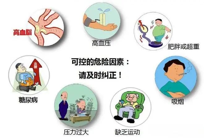 (6)规律用药。若已有高危因素,如高血压、糖尿病、高血脂症等,需规律用药预防与治疗,做好自身健康监测,定期体检,出现不适及时就医。