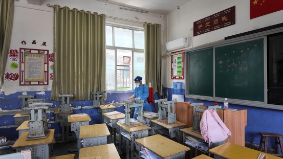 榕江县人民医院消杀工作人员在古州二小进行消杀