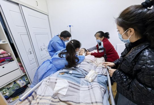 “老人家,今天我们专门来给您换胃管哈。家属请注意哈,往胃管里注入食物时注意判断胃管是否在胃内,准备食物时要注意温度要合适,注入时动作要缓慢,避免管道滑脱。”近日,老年医学科居家医疗服务团队来到73岁胡承碧老人家中。这位患有肺部感染、血管性痴呆、脑梗死后遗症和急性冠脉综合征的老人出院时带着胃管,护士们不仅到家为其更换到期胃管,还细致指导家属注食技巧、用药注意事项及防寒保暖要点。