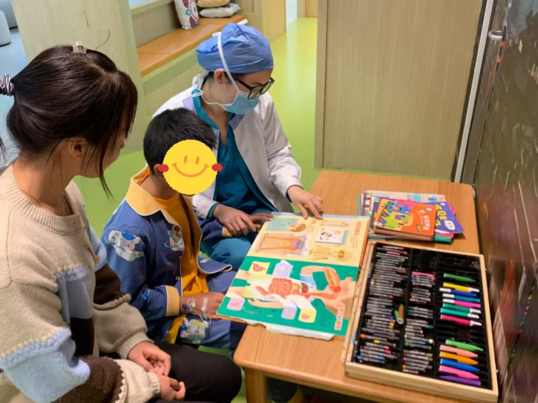 上海儿童医学中心贵州医院护士为患儿讲解术前科普知识,帮助患儿缓解术前焦虑