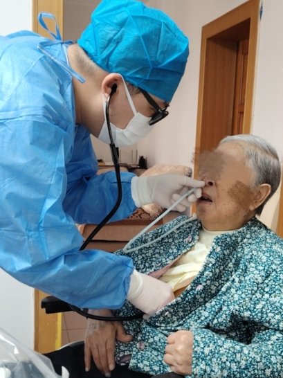 贵阳市第一人民医院重症医学科护士长上门为居家老人更换胃管