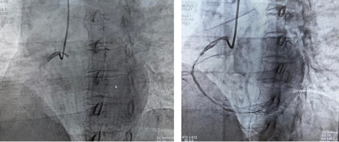 患者被送进标准化心血管导管室,韦波凭借丰富的临床经验与娴熟技术,迅速进行冠状动脉造影,发现患者右冠状动脉(RCA)近中段完全闭塞。术中,韦波成功将导丝通过闭塞病变区域,并使用2.0mm球囊扩张闭塞部位,顺利打通堵塞血管,使血管再通,手术历时近一个小时,成功帮助患者恢复心肌供血。鉴于患者自身以及术中情况,医疗队评估其暂不植入支架,待病情稳定后择期实施。
